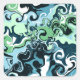 Blue, Green and White swirls Abstract Fluid Art Square Sticker