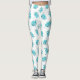 Blue-green and white tropical palm leaves pattern leggings