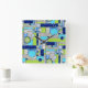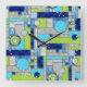 This wall clock has an square block art deco pattern in digital stained glass. A colourful geometric design in colours of blue, aquamarine, and green, perfect for a pop of colour in your home decor. You can make the pattern on this clock bigger or smaller.