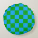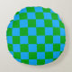 Blue Green Chequered Check Pattern Round Cushion