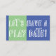Filling most of the front of this card, in an open, funky, playful white font, a typography graphic overlay reads "Let's have a play date!" To further enhance the quirkiness of the card, I've added an editable colour block behind the words "Let's Play". This accent colour also borders the back of the card, surrounding your personal details. Template fields were set up for those personal details on the back, using an agreeable, all caps sans-serif font. You can change the font as well as the sizes of the words if you'd like... just click for further customisation to access the editing fields. And of course you can change the background and accent elements to any colours you like! All details were added separately and left unlocked to give you maximum design control. Please don't hesitate to reach out if you need assistance. // 21 //