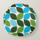 Blue, green, cool, trendy, modern nature abstract round cushion