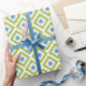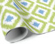 Blue Green Diamonds Ikat Pattern Wrapping Paper