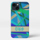 Blue & Green Geometric Pattern Monogram iPhone Case