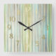 Blue Green Gold Stripes Square Wall Clock