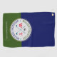A modern and rounded logo design for a stylish golf player personalised with his name and initials... blue and green background