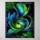 blue green leafy abstract poster
