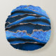 BLUE GREEN MARBLE AGATE GOLD GLITTER GLAM ROUND CUSHION