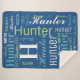 Warm and cosy blanket with personalised monogram and name cloud word art design.