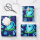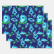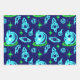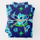 Blue Green Neon Glowing Space Astronaut Rockets Wrapping Paper Sheet