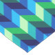 A 16” x 90” table runner featuring a colourful, ombre pattern design of chevrons in lime green, royal turquoise, ocean blue and sky blue.