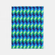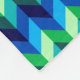 A small sized fleece blanket featuring a colourful, ombre pattern design of chevrons in lime green, royal turquoise, ocean blue and sky blue.
