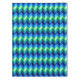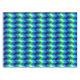 A 52” x 70” tablecloth featuring a colourful, ombre pattern design of chevrons in lime green, royal turquoise, ocean blue and sky blue.