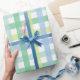 Blue Green Pastel Gingham Pattern Wrapping Paper
