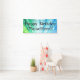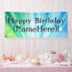 Rainbow of colourful bokeh and rays of light. Blue and green graphic. Rectangle horizontal banner with name of the birthday guest of honour.  Add your name to this personalised birthday themed banner sign.  Great for a birthday party, any age, for kids or adults. Make it now and order with no minimum.  Great to tell guests where the party is at, and direct them to the correct location.  Easy to customise it online.