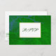 An editable winter holiday RSVP card template with an elegant pattern of pine boughs and pinecones in green and blue on a background of green. Customise It to change fonts or colours, sizes, even save your design for later.