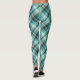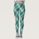 Pretty, soft blue green plaid pattern leggings on a flattering diagonal.