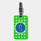 Green dots in close quarters create a secondary pattern of white stars. A large blue circle is surrounded by white lines, while a single white initial graces the centre.