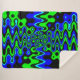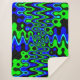 This sherpa fleece blanket features a bold blue and green psychedelic design with flowing, abstract wave patterns and hypnotic symmetry. The high-contrast colors and dynamic artwork create a striking, retro-inspired look with strong visual impact.