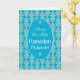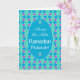 A chic Ramadhan greeting card, 'Across the Miles", with a traditional Islamic pattern in Blue, Green and Purple, outlined in White; from the Posh & Painterly 'Islamic' collection.