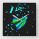Blue Green Rainbow Heart with Stars Square Wall Clock