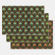 This Art-deco pattern features a stunning combination of blue and gold on a black background, as well as red and gold on black, and green and gold on black. Its versatile design makes it the perfect wrapping pattern for any occasion.