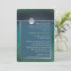 This contemporary, yet distinguished blue and green distressed grunge striped Bar Mitzvah invitation in rich, deep shades of green, silver, and denim blue has a FAUX button medallion with a Star of David on it. The text and paper type is customisable. If you require any other matching items, please email your request to niteowlstudio@gmail.com.
