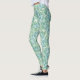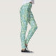 These leggings have a Boho design of overlapping spirals in blue and green on a field of white.