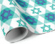 This festive wrapping paper is designed for Jewish holidays and celebrations, featuring a Star of David pattern in vibrant blue and green tones. The stars are arranged on a crisp white background, adding a fresh, colourful touch perfect for Hanukkah, Bar or Bat Mitzvahs, and other special occasions. This wrap combines tradition with a modern, cheerful style.