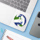 This team colours volleyball sticker for girls or boys features the realistic image of a volleyball that has navy blue, green and white panels - customise the player's name, jersey number, team name and mascot name - by katz_d_zynes