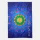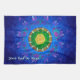 A rotational-type fractal image resembling 1960s tie dye; multi-coloured with blues and yellow predominant. Add your own text.