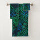 Blue & Green Tropical Palm Fronds on Black Bath Towel Set