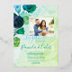 Gradient blue to green to aquamarine roses are beautiful with matching photo framing and silver foil leaves. Floral invitation design is versatile for turquoise, teal green, navy blue rose themes. Garden roses are perfect for any season. Hints of mint green, light blue, hunter green speckled into artwork.