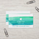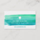 A business card for dentists with a trendy refreshing blue and green watercolour texture with a molar tooth silhouette logo design. Personalise easily with your business details.