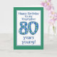 A stylish 80th Birthday Card for a Stepfather, with the number 80 made from a handpainted paper collage, in blue, green and white, coordinating with the lettering and the card's border. Don't forget you can easily customise the inside of this 80th Birthday Card.