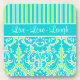 This modern and trendy turquoise blue, green, and white stripes with damask "Live, Love, Laugh" coaster set would make an ideal house-warming gift for the hip, young couple. Customise it however you want!