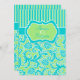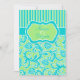 This modern turquoise blue, lime green, and white stripes with floral damask wedding invitation would be perfect for a blue and green wedding theme, or for a tropical destination wedding. The text and type of paper is customisable. ****PLEASE make sure that all text is centred and sized exactly where you want it, as it will print out exactly the way you see it on your monitor. I will not see it, and Zazzle will not edit anything, so if you need help, please email me BEFORE you place your order. If you require any matching items, please email your request to niteowlstudio@gmail.com.