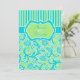 Blue Green White Striped Damask Wedding Invite