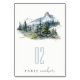 Blue Green Woods Mountain Landscape Sketch Wedding Table Number