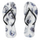 Abstract grey blue pattern of feathery flowers on a white background. Comfortable and chic, get a pair to colour coordinate with every outfit.