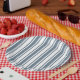 Blue-grey and white candy stripes paper plate