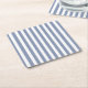 Blue grey and white candy stripes square paper coaster