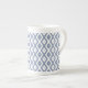 Blue grey and white diamond pattern bone china mug