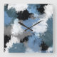 Blue Grey Black Abstract Brushstrokes Square Wall Clock
