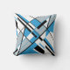 Blue Grey Black White Diagonal Angular Art Design Cushion