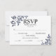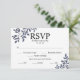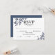 Blue Grey Botanical Glitter Wedding RSVP Card