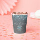 Personalise these grey aqua blue bubbles wedding paper cups with your own couple's names and wedding or event date. Ideal for an outdoor champagne toast or for party drinks or to hold confetti or bubble mixture in. © Original design by Sarah Trett for www.mylittleedenweddings.com