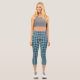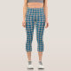 Blue Grey Chequered Diamond Pattern Capri Leggings