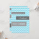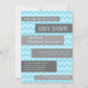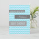 Personalised baby shower invitations in elegant and modern bright aqua blue, dark charcoal grey and white vintage retro chevron zigzags stripes pattern. Customisable with your text, contact us to request a colour change.