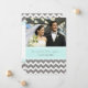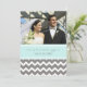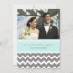 Elopement announcement photo cards in fun and modern light pastel turquoise blue, grey and white chevron retro zigzags pattern, fully customisable with your names, wedding photo and wedding details, the perfect way to announce that you have eloped to friends and family. Available in a wide range of matching wedding products.